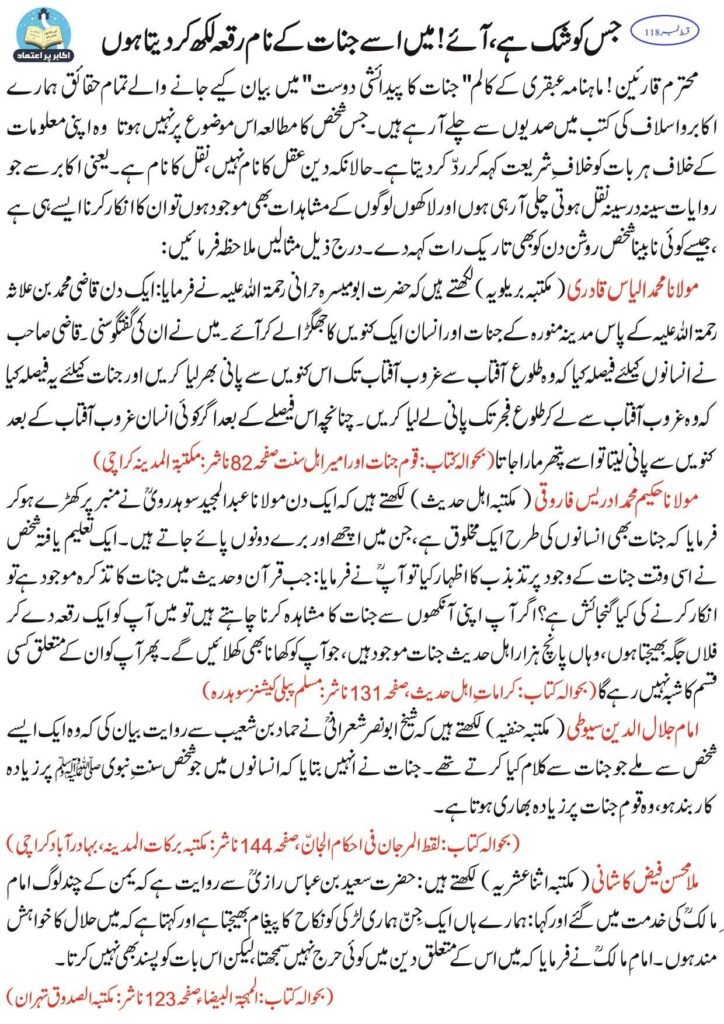 (بحوالہ کتاب: لقط المرجان فی احکام الجان، صفحہ 144 ناشر : مکتبہ برکات المدینہ، بہادر آباد کراچی )