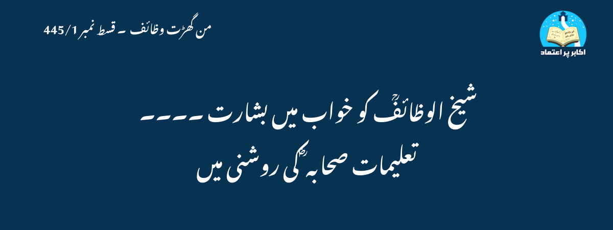 شیخ الوظائفؒ کو خواب میں بشارت ۔۔۔۔ تعلیمات صحابہ ؓ کی روشنی میں