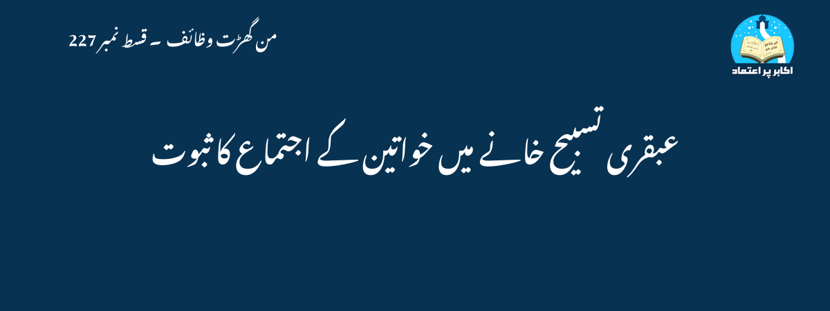 محترم قارئین ! کچھ لوگ اپنی لاعلمی کی وجہ سے تسبیح خانے کے مختلف معمولات پر شک و شبے کا اظہار کرتے ہیں، حالانکہ اللہ جل شانہ کے فضل سے تسبیح خانے کے ہر عمل کے پیچھے قرآن وسنت کی دلیل اور صحابہ و تابعین و فقہاء و محدثین رحمہم اللہ اجمعین یعنی تمام اکابر واسلاف سے ثبوت موجود ہے۔ اس شک میں مبتلاء کچھ لوگ کہتے ہیں کہ عبقری تسبیح خانے میں جو ہر جمعرات خواتین کیلئے الگ درس کا انتظام ہوتا ہے ، اس کا شریعت میں کیا ثبوت ہے؟ قارئین ! دور جانے اور زیادہ دلائل پیش کرنے کی ضرورت ہی نہیں ،،، ایسی مجالس جہاں قال الله وقال الرسول صلی اللہ علیہ وسلم بیان ہو، ایسی محافل جہاں عشق مصطفی صلی اللہ علیہ وسلم سکھایا جاتا ہو اور ایسی جگہیں جہاں آل رسول و اصحاب رسول صلی اللہ علیہ وسلم کی ترتیب زندگی کی طرف واپس لوٹنے کی دعوت دی جاتی ہو، بھلا کون کم نصیب ہوگا ، جو ان پر اعتراض کرے گا ؟