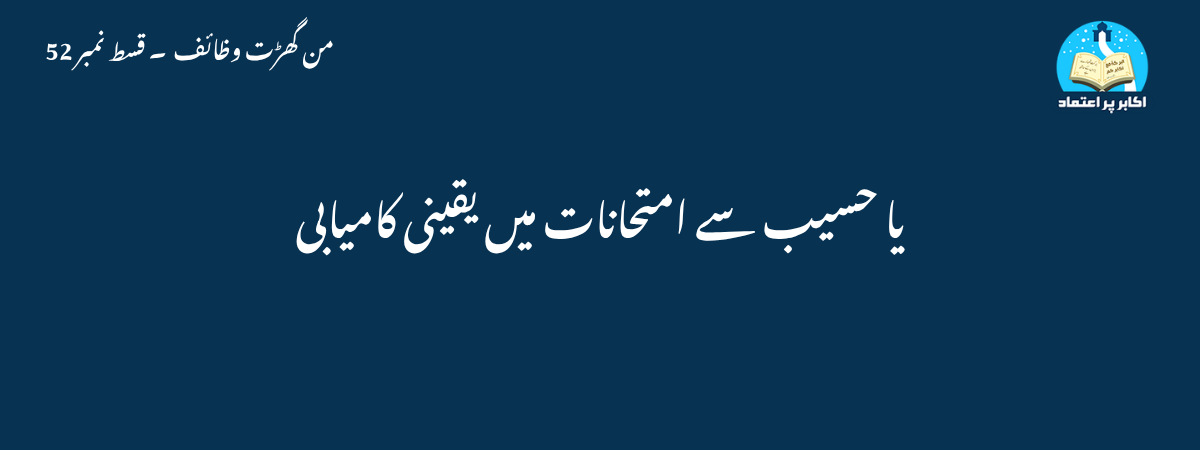حضر ت مولا نا مفتی دین محمد صا حب ؒفرما تے ہیں کہ اگر کسی طا لب علم کو نتیجہ امتحا ن کے با رے میں تشویش ہو تو وہ تین دن تک روزا نہ با وضو قبلہ کی طر ف منہ کر کے بیٹھے اور ایک ہی نسشت میں گیا رہ ہزا ر مر تبہ’’ یا حسیب ‘‘پڑھےتو ان شا ء اللہ نتیجہ حسبِ مرا د نکلے گا۔