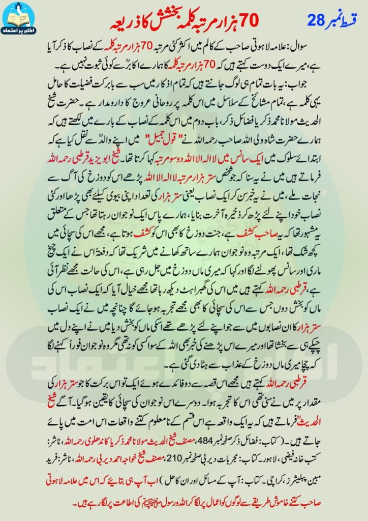 70 hazar martaba kalma bakshish ka zariya