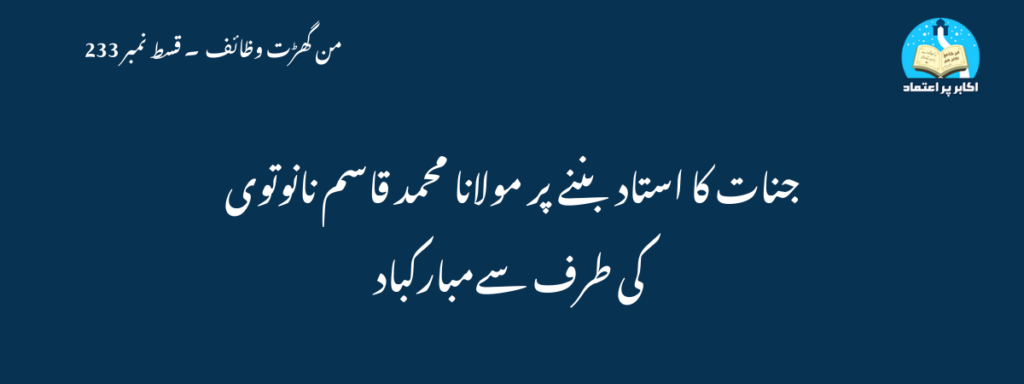 قارئین ! عبقری میگزین میں جنات کے واقعات شائع ہونے پر کچھ لوگوں کی طبیعت میں گرانی محسوس ہونا شروع ہو جاتی ہے، جبکہ ہمارے اکابر واسلاف کا یہ مزاج تھا کہ جنات سے تعلقات کو مبارک خیال کیا کرتے تھے۔ جیسا کہ دارالعلوم کے اولین شیخ الحدیث سید احمد حسن امروہوی رحمتہ اللہ علیہ کے متعلق ان کے پوتے مولانا پروفیسر ڈاکٹر سید وقار احمد رضوی لکھتے ہیں : میرے دادا حضرت مولانا سید احمد حسن امروہوی رحمۃ اللہ علیہ کے متعلق امروہہ شہر میں یہ بات عام طور پر مشہور تھی کہ جب وہ درس حدیث ارشاد فرماتے تو اس میں جنات بھی شریک ہوتے تھے۔ اس بات کی تصدیق میرے والد مولانا حافظ سید محمد رضوی اور خود میرے دادا مولانا سید احمد حسن رحمہما اللہ کی ہے۔ چنانچہ جب میرے دادا نے اپنے استاد قاسم العلوم والخیرات مولانا محمد قاسم نانوتوی رحمتہ اللہ علیہ سے اس بات کا ذکر کیا تو انہوں نے فرمایا: مبارک ہو میر احمد حسن ! تمہارے درس میں جنات شریک ہوتے ہیں۔ لہذا علمائے دیوبند میں میرے دادا کو یہ فضیلت حاصل تھی کہ ان کے درس حدیث میں جنات بھی شریک ہوتے تھے. (بحوالہ کتاب: شیخ الحدیث اول دار العلوم ، سید العلماء حضرت مولانا احمد حسن محدث امروہوی رحمۃ اللہ علیہ کے احوال و آثار ، صفحہ 386 ناشر : مکتبہ رشید یه نزد مقدس مسجد اردو بازار، کراچی) قارئین ! درج بالا واقعے پر غور کریں تو پتہ چلتا ہے کہ جنات سے ملاقاتیں اور تعلقات ایسی لازوال حقیقت ہے ، جس کا تذکرہ سامنے آتے ہی بڑے بڑے اکابر علماء سر تسلیم خم کر دیتے تھے مگر افسوس ! آج ہم قرآن و سنت اور اپنے اکابر کی ترتیب سے اتنا دور ہو گئے کہ خود صراط مستقیم پر چلنے والوں ہی کو شک کی نگاہ سے دیکھنے لگے۔