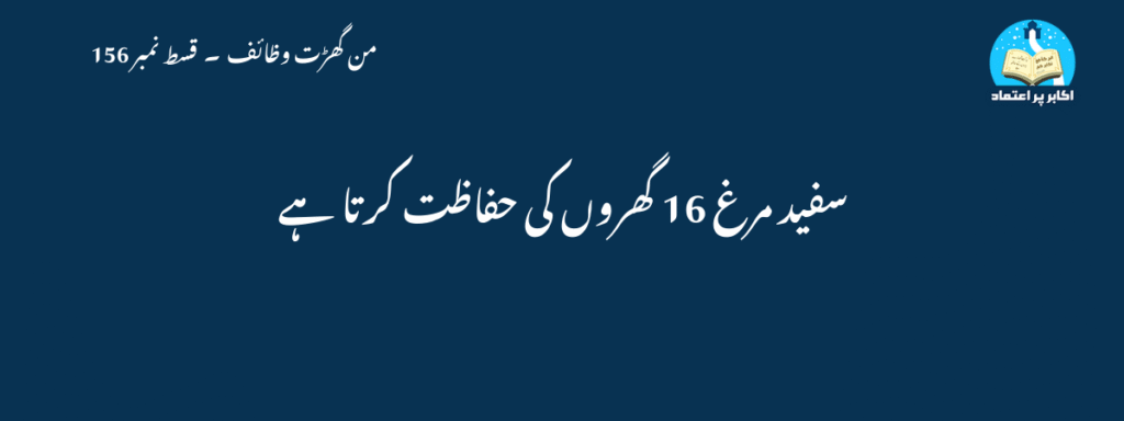 کچھ عرصہ پہلے تسبیح خانے میں درس کے دوران سفید مرغ کے کمالات بتائے گئے تو کچھ لوگوں نے کہا کہ یہ سب من گھڑت باتیں ہیں۔ بھلا مرغ کا سکون اور سلامتی سے کیا رشتہ؟ حالانکہ ایسے حضرات کو سوچنا چاہئے تھا کہ بھلا دینی امور کے ساتھ کم عقلی کا کیا رشتہ؟ 1400 سال پہلے نازل ہونے والی شریعت میں آقائے دو جہاں ﷺ نے جن باتوں کو کائنات میں بسنے والے انسانوں اور جنات کے سامنے پیش کر دیا، بھلا آج ایسی کون سی تبدیلی آ گئی ہے کہ ان باتوں سے انکار کر دیا جائے؟ کیا آج کا انسان روٹی کی بجائے چارہ کھانا شروع ہو گیا ہے؟ کیا آج کا انسان لباس کی بجائے چیتے کی کھال سے جسم ڈھانپنا شروع ہو گیا ہے؟ کیا آج کا انسان زمین کی بجائے جنت الفردوس کا باسی بن گیا ہے؟ اگر ایسا کچھ نہیں ہوا تو جان لیں کہ ہمیں بھی انہی احتیاطوں کی ضرورت ہے جو آج سے 1400 برس پہلے بتائی گئی تھیں۔ الحمدللہ! عبقری اور تسبیح خانے کا عالمی مقصد یہی ہے کہ مخلوقِ خدا کو ایسے آزمودہ وظائف اور آسان ٹوٹکے بتائے جائیں، جن کی برکت سے ان کی دنیاوی زندگی بھی خوشحال ہو جائے اور آخرت بھی بہترین۔ امام طبرانی رحمۃ اللہ علیہ لکھتے ہیں: حضرت انس رضی اللہ عنہ سے روایت ہے کہ رسول اللہ ﷺ نے ارشاد فرمایا:"سفید مرغ رکھا کرو، کیونکہ جس گھر میں سفید مرغ ہو، وہاں نہ تو شیطان اس گھر کے قریب ہوگا، نہ جادوگر اور نہ کوئی درندہ ان گھروں کے قریب آئے گا جو اس گھر کے اردگرد ہیں”۔ (رواہ فی الأوسط) امام بیہقی رحمۃ اللہ علیہ لکھتے ہیں: حضرت عبد اللہ بن عمر رضی اللہ عنہما سے روایت ہے کہ رسول اللہ ﷺ نے ارشاد فرمایا:"مرغ نماز کے لیے اذان دیتا ہے، اور جو شخص سفید مرغ رکھے گا، اس کی تین چیزوں سے حفاظت کی جائے گی:1۔ شیطان کے شر سے2۔ جادوگر کے شر سے3۔ کاہن کے شر سے” (رواہ فی شعب الایمان) امام حارث بن ابی اسامہ رحمۃ اللہ علیہ، حضرت ابوزید انصاری رضی اللہ عنہ سے روایت کرتے ہیں کہ رسول اللہ ﷺ نے ارشاد فرمایا:"سفید مرغ میرا دوست ہے اور میرے دوست کا بھی دوست ہے۔ یہ اپنے مالک کے گھر کی بھی نگہبانی کرتا ہے اور اس کے اردگرد کے سات گھروں کی بھی نگہبانی کرتا ہے”۔ (مسند حارث) حضرت انس رضی اللہ عنہ ہی سے روایت ہے کہ رسول اللہ ﷺ نے ارشاد فرمایا:"شاخ دار کلغی والا سفید مرغ میرا دوست ہے اور میرے دوست حضرت جبریل علیہ السلام کا بھی دوست ہے۔ یہ اپنے گھر کی بھی حفاظت کرتا ہے اور اپنے پڑوس کے 16 گھروں کی بھی حفاظت کرتا ہے: 4 دائیں طرف، 4 بائیں طرف، 4 سامنے سے اور 4 پیچھے سے”۔ (رواہ ابو الشیخ فی کتاب العظمة) حضرت عبد اللہ بن عمر رضی اللہ عنہما سے روایت ہے کہ:"سفید مرغ کو برا بھلا مت کہو، اس لیے کہ یہ میرا دوست ہے اور میں اس کا دوست ہوں، اور اس کا دشمن میرا دشمن ہے۔ جہاں تک اس کی آواز پہنچتی ہے، یہ جنات کو دفع کرتا ہے”۔ (رواہ ابن حبان)