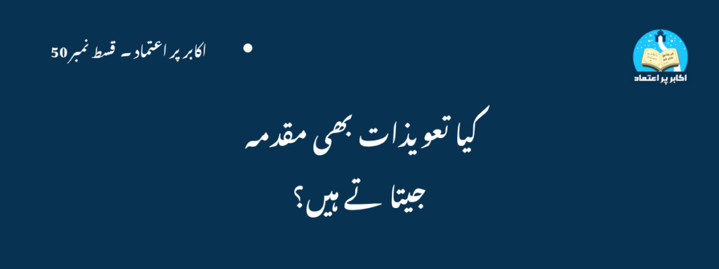 اکابر پر اعتمادکیا تعویذات بھی مقدمہ جیتا تے ہیں؟ حضرت مولانا اشرف علی تھانوی رحمت اللہ لکھتے ہیں کہ ایک دیہاتی شخص کا کسی ڈپٹی کی عدالت میں مقدمہ تھا ۔ اس نے حاجی عابد حسین صاحبسے تعویذ لیا مگر عدالت میں وہ تعویذ لے جانا بھول گیا۔ جج نے جب اس سے پوچھ گچھ کی تو دیہاتی نے کوئی جواب نہ دیا بلکہ یہ کہا: ابھی ٹھہر جاؤ گھر سے صحیح (تعویذ) لے آؤں، پھر بتاؤں گا۔ وہ ڈیٹی حج مسلمان تھا ، مگر نیچری ذہنیت رکھتا تھا۔ کہنے لگا : اچھا لے آؤ آج میں بھی دیکھتا ہوں کہ تعویز کیا کرتا ہے۔ اس نے دل میں ٹھان لی کہ آج جو بھی ہو جائے، حتی الامکان اس دیہاتی کا مقدمہ بگاڑ دوں گا۔ آخر وہ دیہاتی تعویذ لے آیا اور اپنی پگڑی کی طرف اشارہ کر کے بولا : اس میں رکھا ہوا ہے اب پوچھو ۔ چنانچہ ڈپٹی صاحب نے خوب جرح و قدح کی اور اس کے کیس کو بالکل بگاڑ دیا، حتی کہ فیصلہ بھی اس کے خلاف لکھ دیا، مگر جب سنانے لگا تو اپنے لکھے ہوئے فیصلے کے برکس الفاظ بول دیے۔ پھر خود حیران ہوا کہ میں نے تو جان بوجھ کر اس کے خلاف فیصلہ کیا تھا، مگر یہ سب کچھ کیسے ہو گیا۔ آخر کار حاجی عابد حسین رحمت اللہ کی خدمت میں پہنچا اور توبہ کی۔مصنف: مولانا اشرف علی تھانوی رحمت اللہ. ناشر اداره تالیفات تالیفاتِ اشرفیہ ملتان