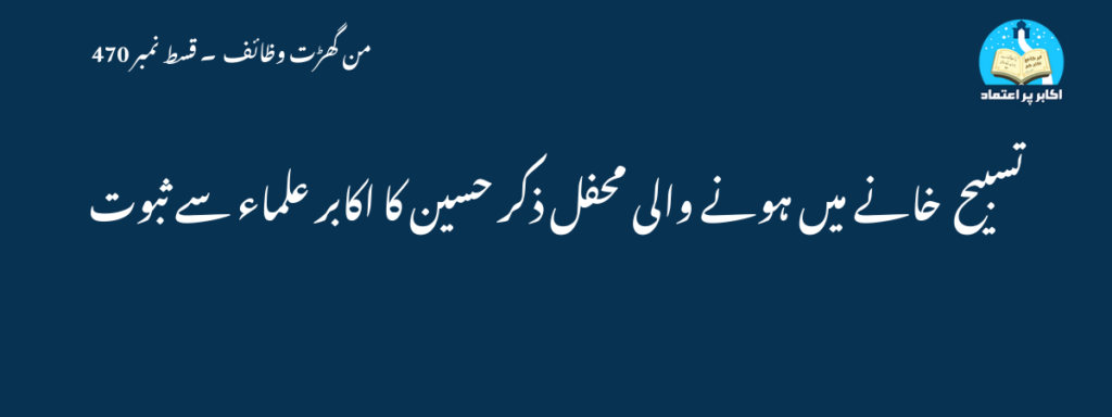 تسبیح خانے میں ہونے والی محفل ذکر حسین کا اکابر علماء سے ثبوت