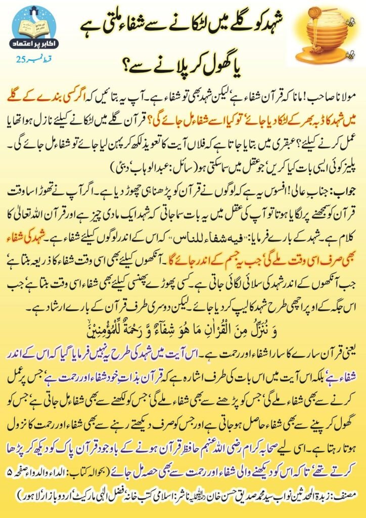 Shehd ko galy mn latkany sy shifa milti hy ya ghol kr peeny mn